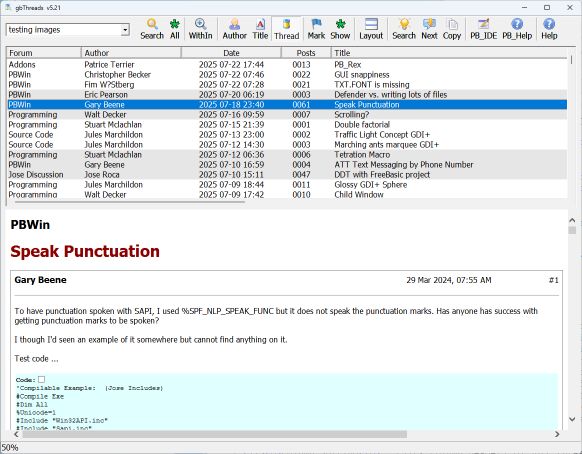 gbThreads is an offline thread viewer for the PowerBASIC Forum.